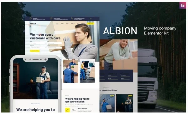 Albion - это комплект шаблонов Elementor для мувинговой компании.