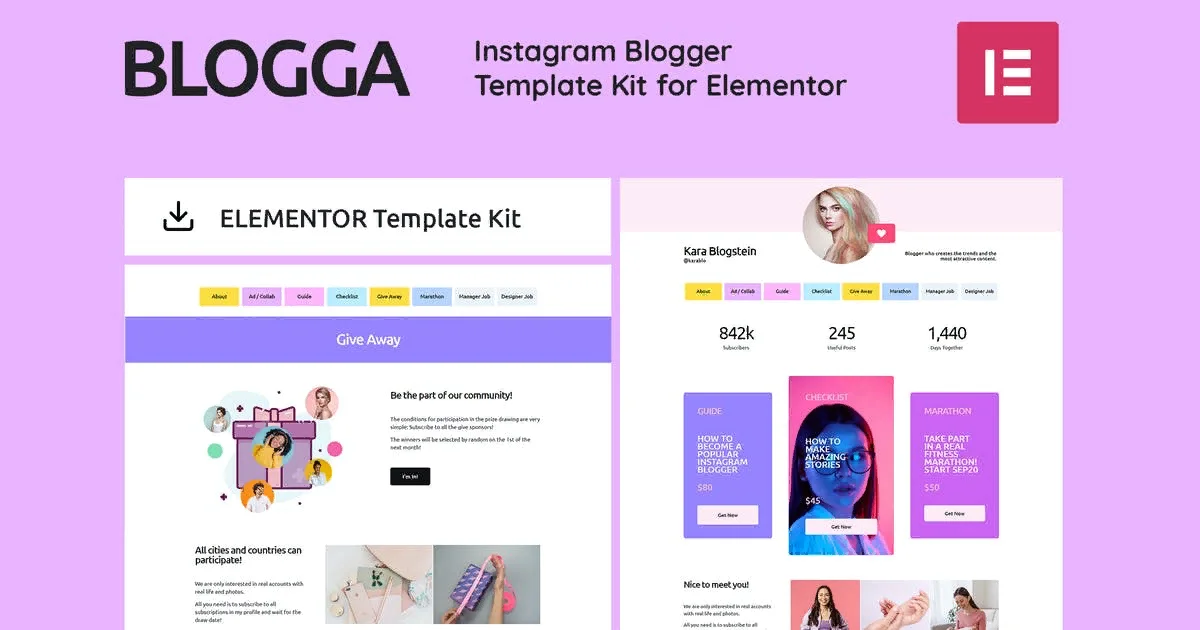 Название: Blogga - Instagram Blogger Elementor Template Kit