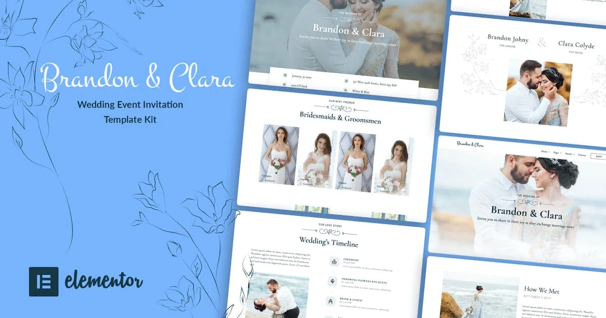 Название: Brandon & Clara - Wedding Event Invitation Elementor Template Kit