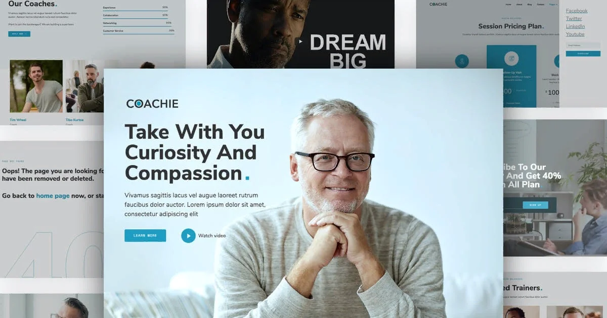 Coachie - это комплект шаблонов Elementor, созданный для тренерского бизнеса. Шаблон имеет пиксель-перфектный дизайн, что гарантирует гибкость и легкость расширения вашего конечного творения. Кроме того, Coachie безупречно работает на устройствах с различными размерами экрана.
