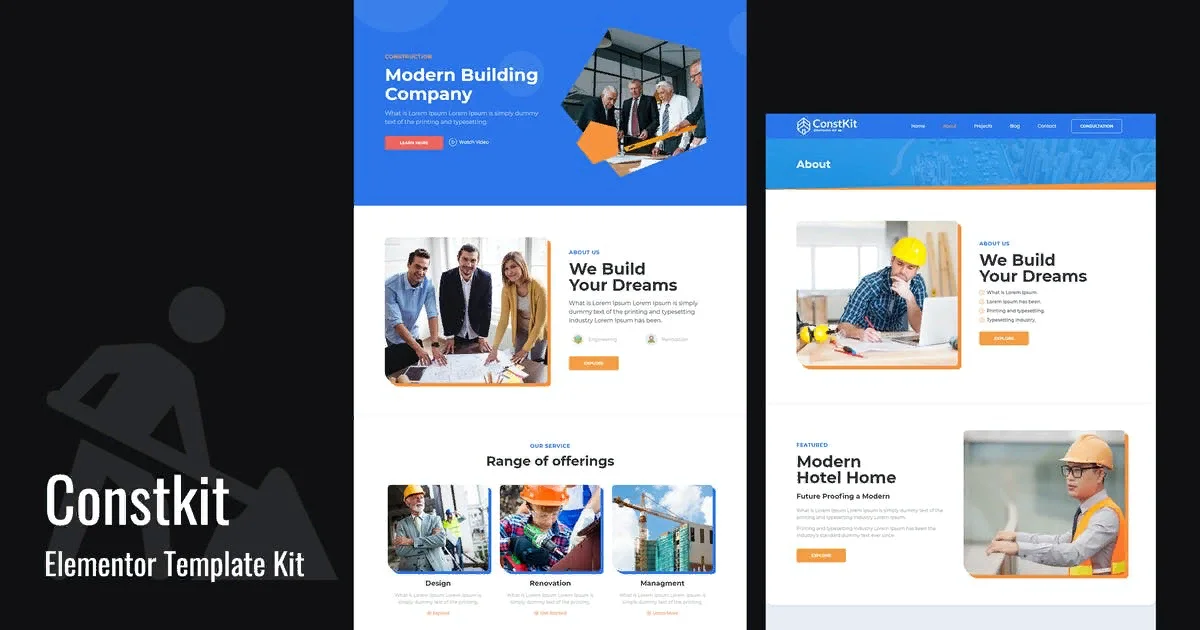 Constkit - идеальный набор шаблонов Elementor для строительства и других подобных видов бизнеса.