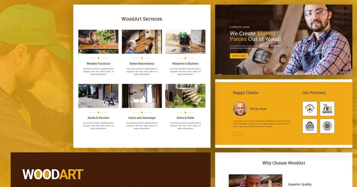 WoodArt - TemplateKit специально разработан для столяров, мебельных магазинов и других подобных видов бизнеса. Комплект шаблонов WoodArt имеет полностью отзывчивую основу, которая выглядит фантастически на любом мобильном устройстве, и графику высокого разрешения. В этом наборе шаблонов используются демонстрационные изображения из Envato Elements. Чтобы использовать эти изображения на своем сайте, вам потребуется лицензия Envato Elements, или вы можете заменить их своими собственными.