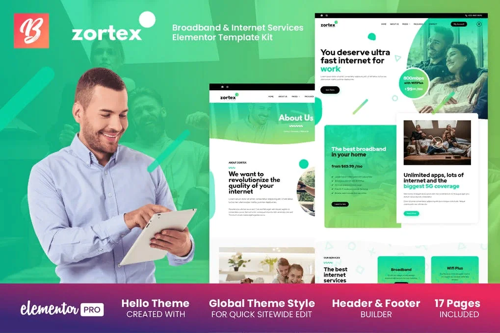 Название: Zortex - Broadband & Internet Services Elementor Template Kit