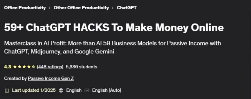 Скачать [Поколение пассивного дохода Z] [Udemy] 59+ взломов ChatGPT для заработка денег в интернете (2025)
