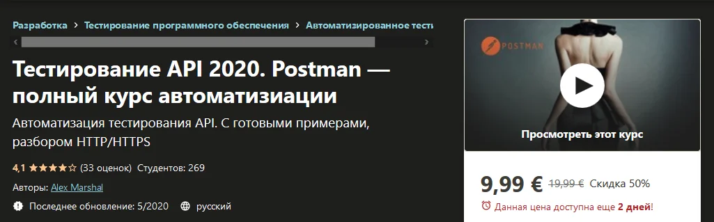Название: естирование API 2020. Postman — полный курс автоматизиации (2020)