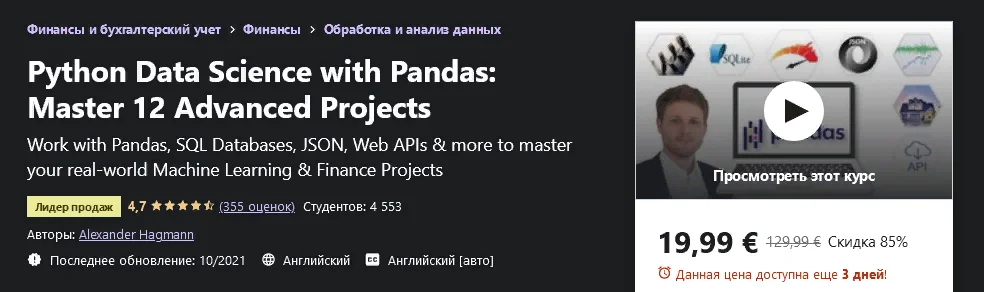 - Расширенные рабочие процессы с данными из реального мира с помощью Pandas вы не найдете ни в одном другом курсе.