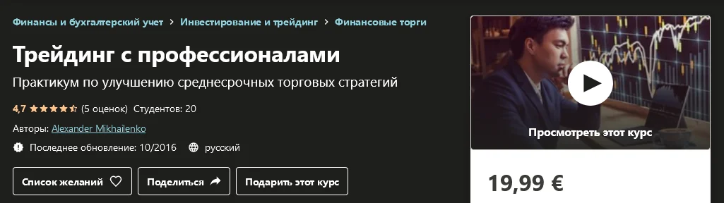 Материалы данного курса входят в более обширный видеокурс для трейдеров "Трейдинг. Успешный старт 2.0".
