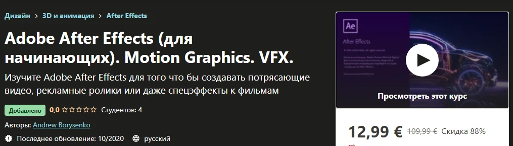 Добро пожаловать на курс "Adobe After Effects (для начинающих). Motion Graphics. VFX."!