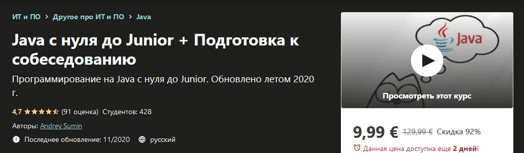 Название: Java с нуля до Junior + Подготовка к собеседованию (2020)