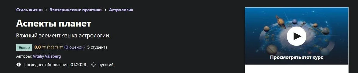 Курс включает полный спектр аспектарного взаимодействия всех планет септенера и высших планет. Эти знания помогут вам находить взаимосвязи изучаемой вами астрологической карты с реальными обстоятельствами вашей жизни.