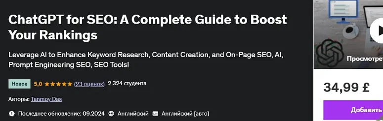 Скачать [Udemy] ChatGPT для SEO - полное руководство по повышению рейтинга (2024)
