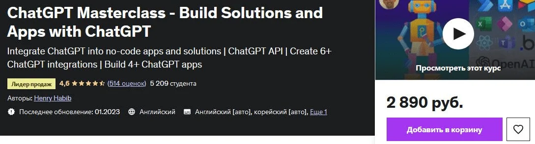 Нейросети [Udemy] ChatGPT для создания и редактирования видео. Полное руководство (2023)