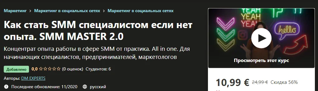Название: Как стать SMM специалистом если нет опыта. SMM Master 2.0 (2020)