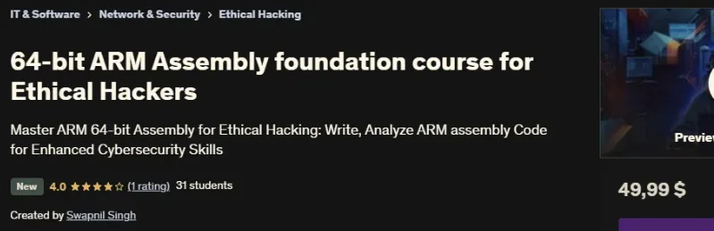 Скачать [Udemy] Фундаментальный курс по 64-битному ARM Assembly для этических хакеров (2025)