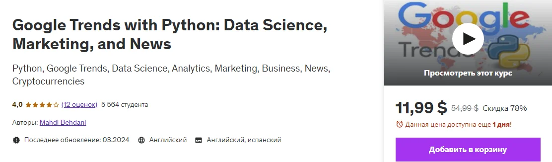 Скачать [Udemy] Google Trends с Python - наука о данных, маркетинг и новости (2024)