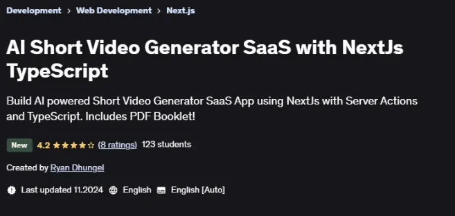 Скачать [Udemy] ИИ генератор коротких видеороликов SaaS с NextJs TypeScript (2025)