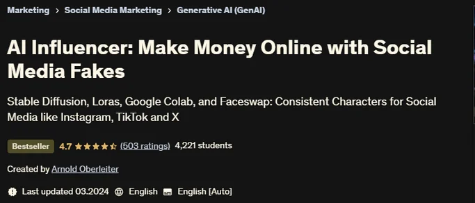 Скачать [Арнольд Оберлейтер] [Udemy] ИИ инфлуэснсер: Зарабатывайте деньги онлайн в соцсетях (2024)