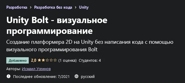 Название: Исмаил Усеинов: Unity Bolt - визуальное программирование (2021)