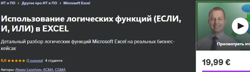 Скачать [Udemy] Использование логических функций (если, и, или) в Excel (2024)