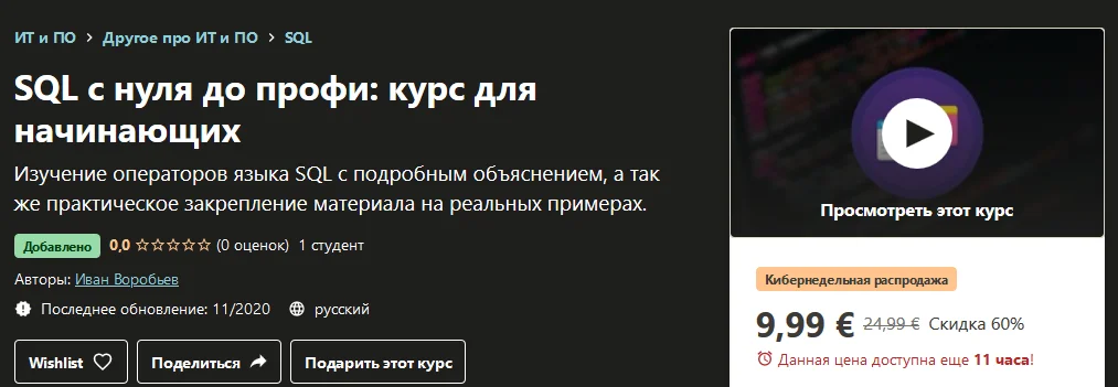 Название: SQL с нуля до профи: курс для начинающих (2020)