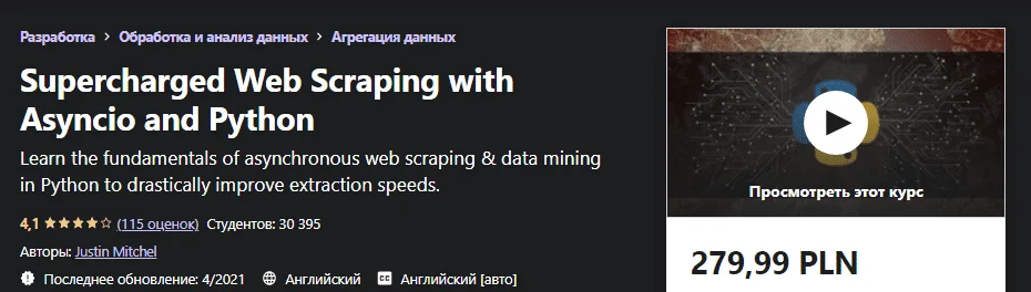 Если вы раньше много раз занимались парсингом веб-страниц, но никогда не использовали Python aysncio, этот курс поможет вам лучше понять основы и вывести вашу парсинг-игру на новый уровень.