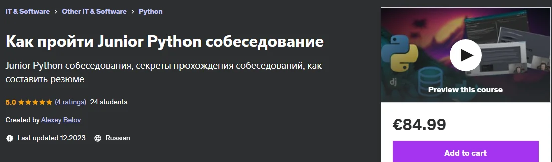 Python [Udemy] Как пройти Junior Python собеседование (2023)