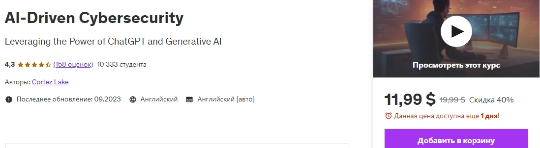 Этот курс проведет вас через мощное сочетание искусственного интеллекта и кибербезопасности, подчеркнув, на что способны ChatGPT и генеративный искусственный интеллект.