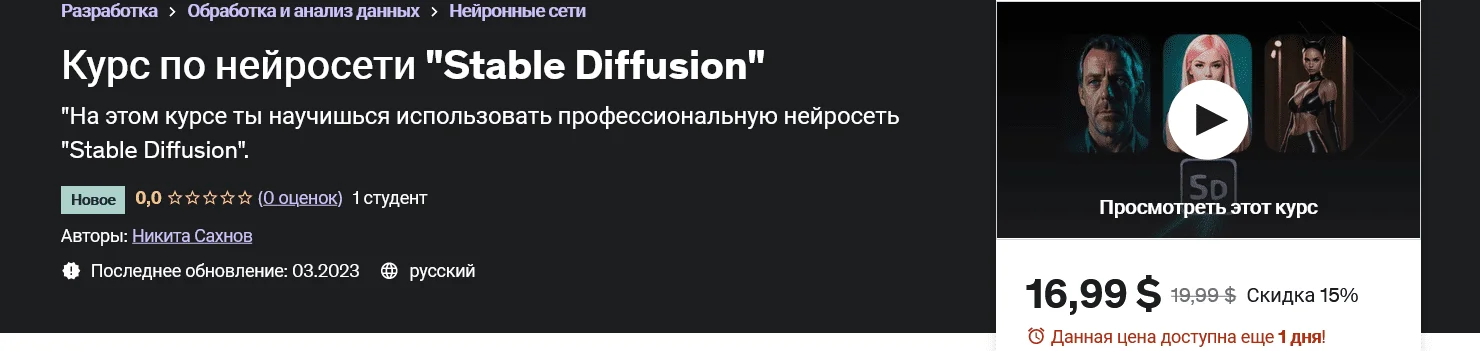 Скачать [Udemy] Курс по нейросети Stable Diffusion (2023)