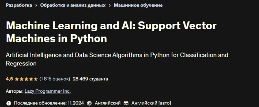 Скачать [Udemy, Lazy Programmer Inc.] Машинное обучение и искусственный интеллект: вспомогательные векторные машины в Python (2024)