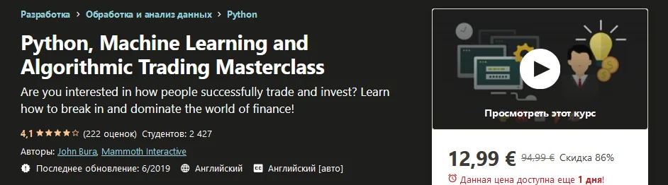 Окончательный мастер-класс по Python, машинному обучению и алгоритмической торговле