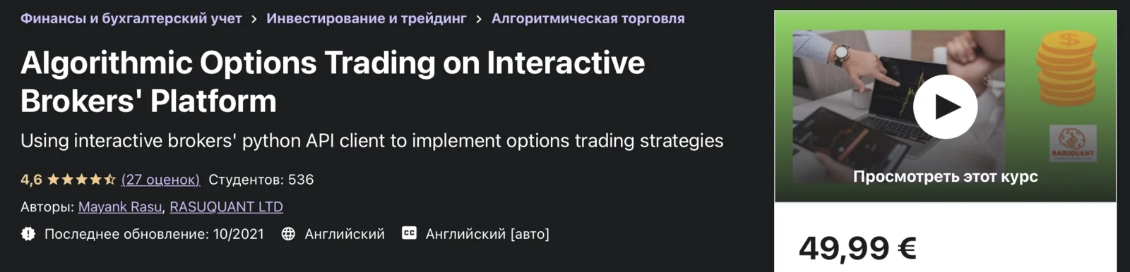 Название: Алгоритмическая торговля опционами на платформе Interactive Brokers (2021)