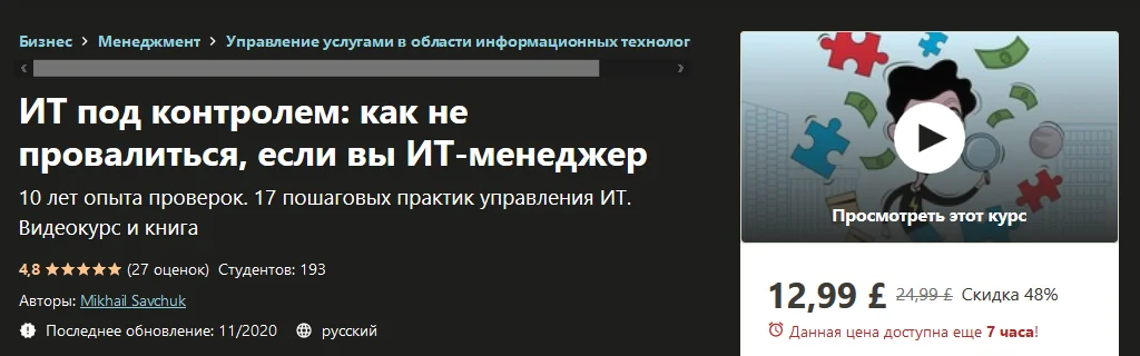 Рекомендуемый курс Udemy в категории "ИТ-менеджмент"