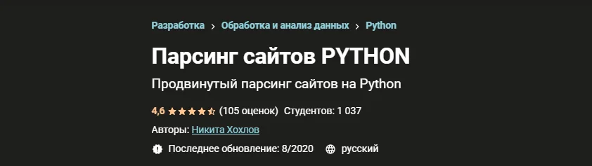 Название: Никита Хохлов - Парсинг сайтов Python (2021)