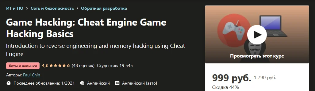 Программирование [Udemy] [Paul Chin] Гейм Хакинг: Основы взлома игр с Cheat Engine (2021)