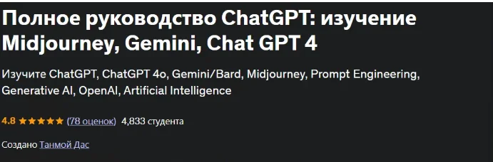 Нейросети [Udemy] Полное руководство ChatGPT - изучение Midjourney, Gemini, Chat GPT 4 (2024)