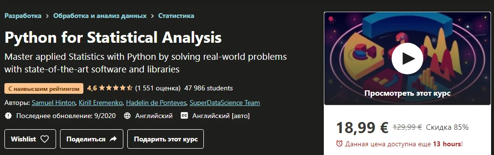 Этот курс разработан, чтобы помочь вам добиться успеха, погрузившись в реальный мир статистики и науки о данных.
