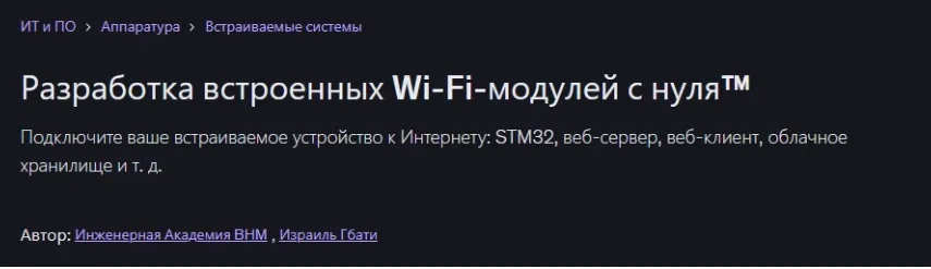 Скачать [Udemy, Израиль Гбати] Разработка встроенных Wi-Fi-модулей с нуля™ (2026)​