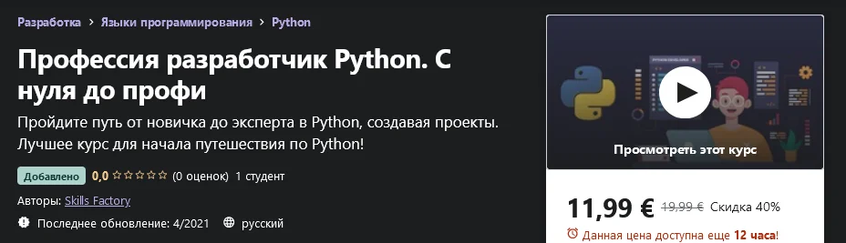 Python [Udemy] Skills Factory - Профессия разработчик Python. С нуля до профи (2021)