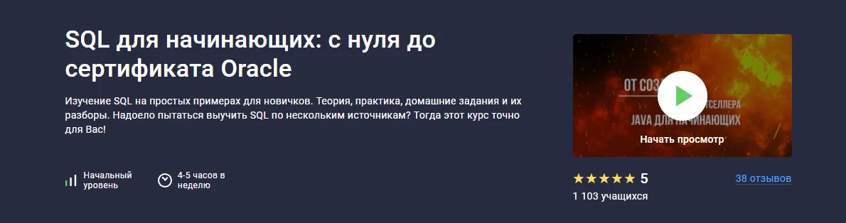 А также курс несомненно заценят люди, которые уже имеют какое-то представление о SQL. Поверьте, Вы обязательно узнаете много нового вне зависимости от уже имеющихся знаний.