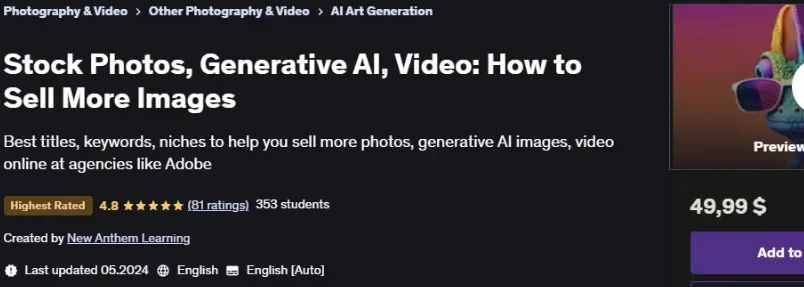Скачать [Udemy] Стоковые фотографии, генеративный искусственный интеллект, видео - как продавать больше изображений (2025)
