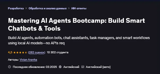 Скачать [Vivian Aranha] [Udemy] Учебный лагерь по созданию агентов ИИ: создание умных чат-ботов и инструментов (2025)