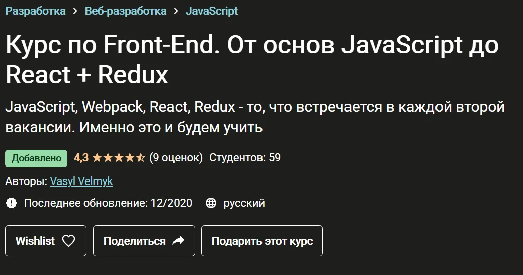 Скачать [Udemy] [Васил Велмык] Курс по Front-End. От основ JavaScript до React + Redux (2020)