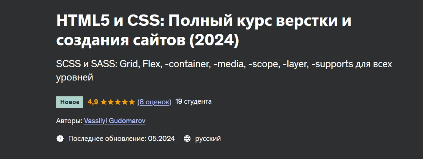 Скачать [Udemy] Верстка и создание сайтов, полный курс - HTML5 CSS (2024)