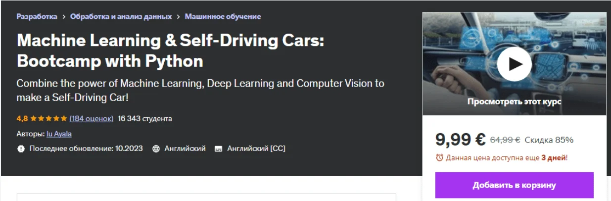 Машинное обучение и беспилотные автомобили - учебный курс с Python (2023) - Скачать