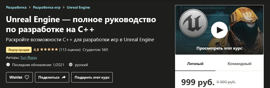 - Программирование на C++ под Unreal Engine