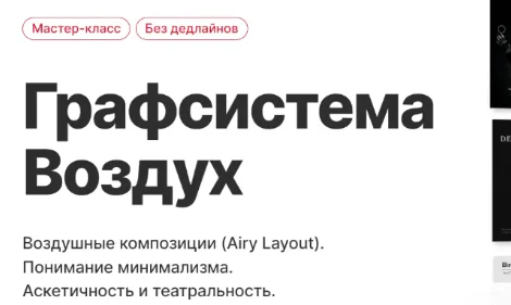 Понимание минимализма. Если вы хотите осознать, почему полупустые макеты работают. Почему это вовсе не пустота, а осмысленное пространство. Чёрный и белый выступают как полноценные цвета. Настраивается тонкая ювелирность пропорций между элементами. Аскетичность и театральность. Всё это в графсистеме Воздуха.