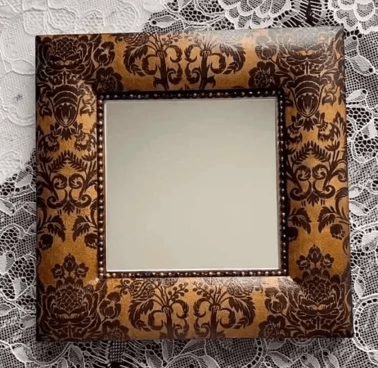 Предложенный способ подходит для декорирования различных поверхностей и заготовок, я решила преобразить старенькую рамочку, превратив её в красивое интерьерное зеркальное панно.