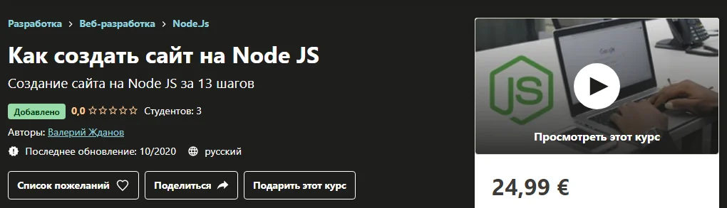 Название: Как создать сайт на Node JS (2020)