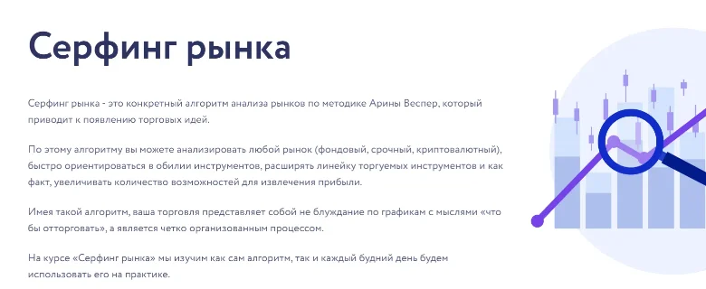Серфинг рынка - это конкретный алгоритм анализа рынков по методике Арины Веспер, который приводит к появлению торговых идей.