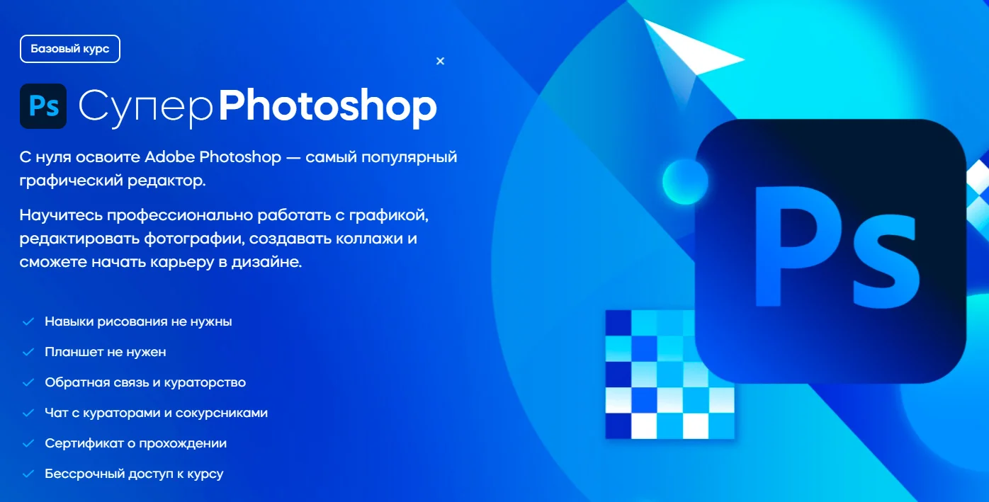 С нуля освоите Adobe Photoshop — самый популярный графический редактор.